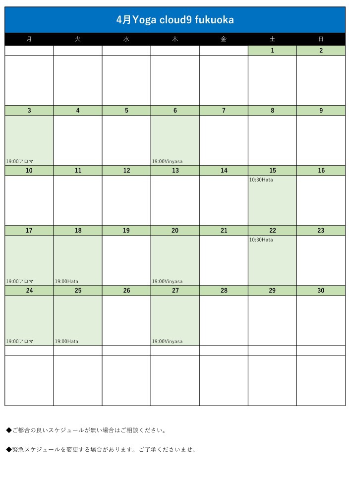 4月スケジュールのお知らせ