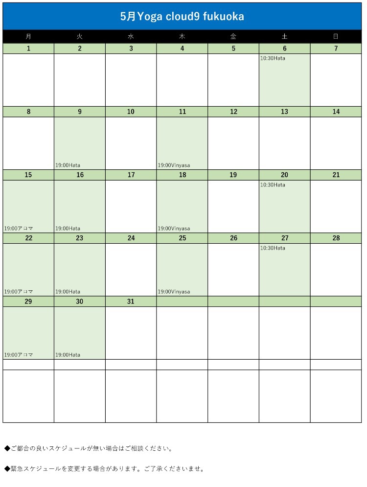5月スケジュールのお知らせ