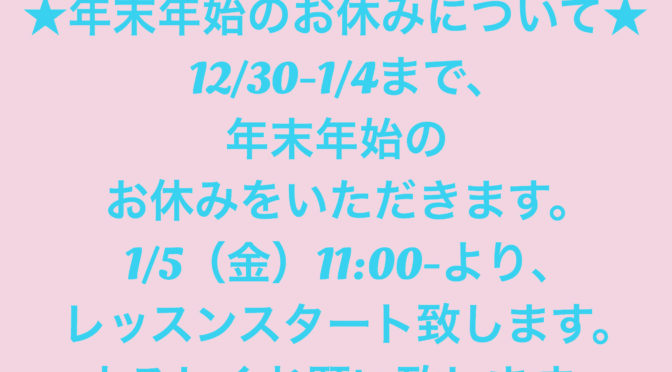 yoga, 全て 年末年始のお知らせ 2017-12-21 Yoga Cloud9 FUKUOKA Yoga Cloud9 FUKUOKA のRieです! 早いもので12月も残すところあと10日ですね💦 年末年始のスケジュール↓はこちら 1月のスケジュールは、明日更新させて頂きます。 どうぞよろしくお願い致します。