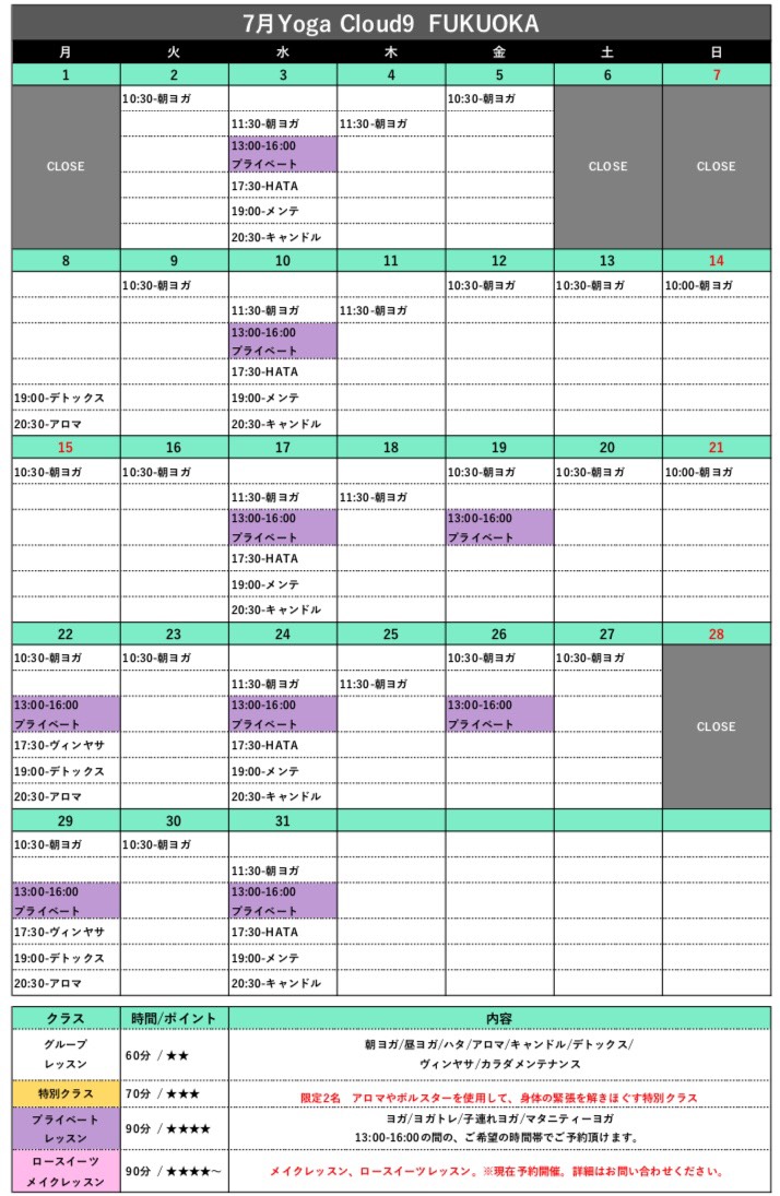 7月スケジュールのお知らせ