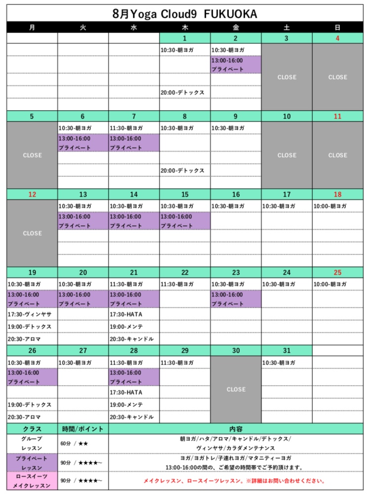 8月スケジュールのお知らせ