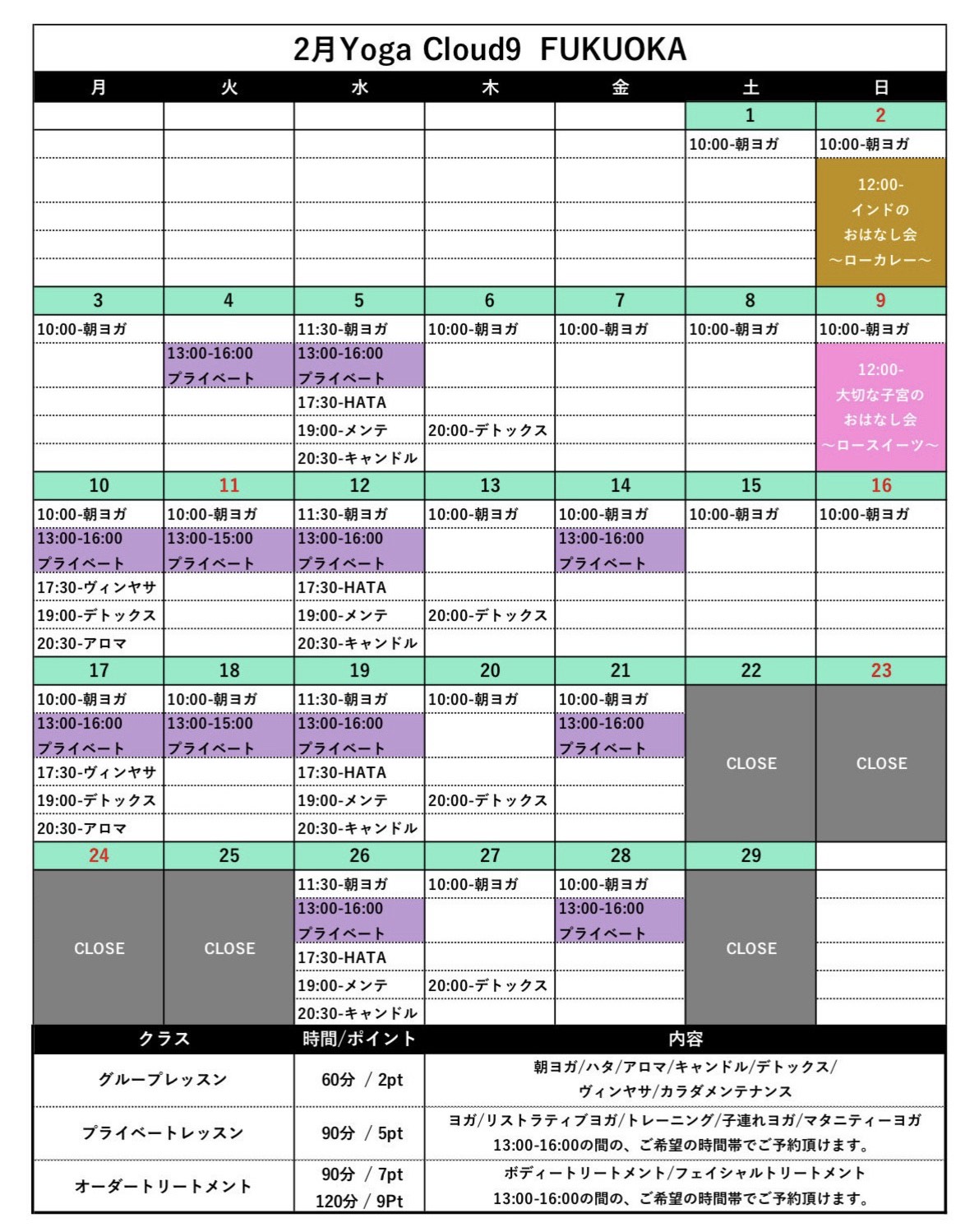 2月スケジュールのお知らせ