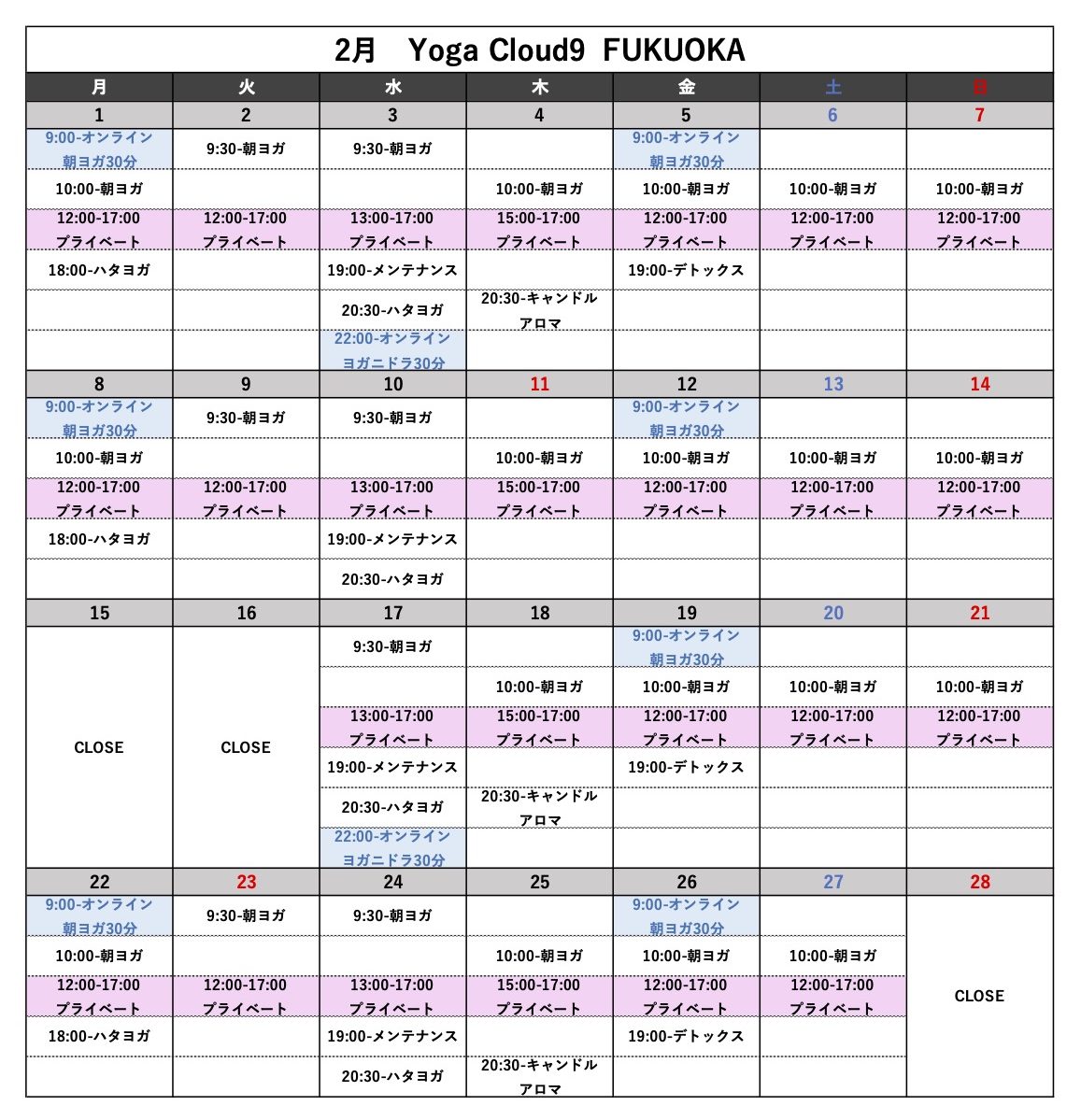 2月スケジュールのお知らせ