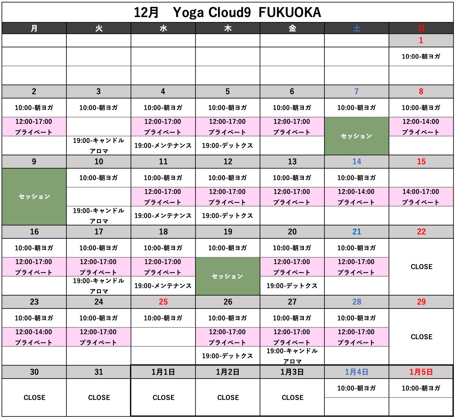 yoga, 全て 2024年12月スケジュールのお知らせ。 2024-11-18 Yoga Cloud9 FUKUOKA みなさんこんにちは! 12月のスケジュールをお知らせさせて頂きます。 来月もどうぞ宜しくお願い致します。